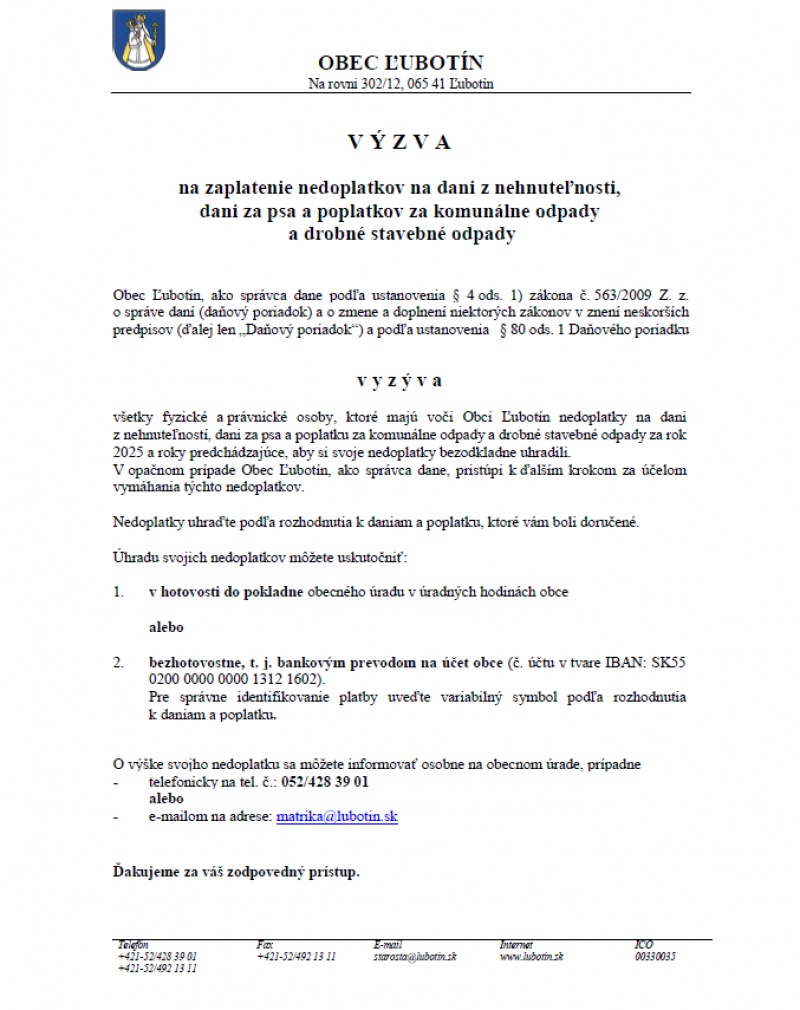Výzva na úhradu nedoplatkov